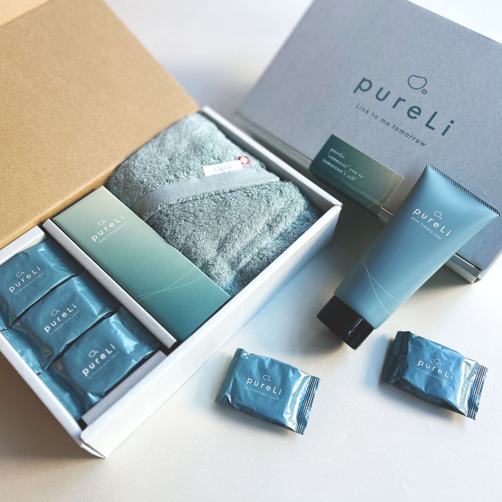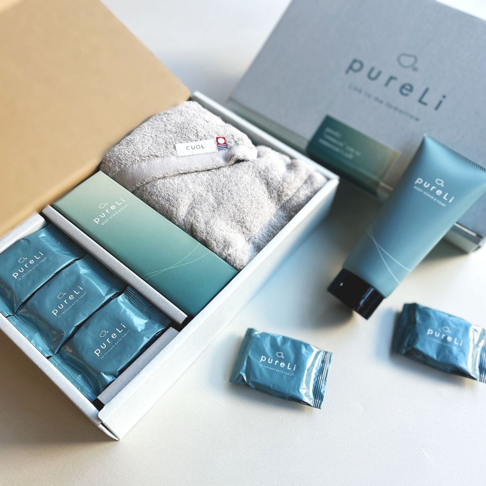 pureLi 入浴剤 と ボディスクラブ 今治フェイスタオルのギフトセット